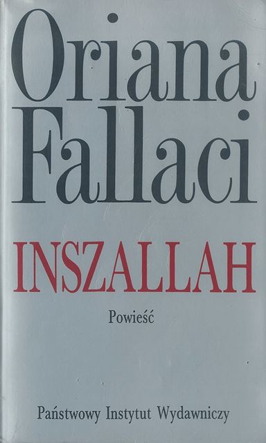 Sławna włoska dziennikarka tym razem w roli powieściopisarki. Powieść „Inszallah” to monumentalny pomnik pacyfizmu, pejzaż okrucieństwa i bezsensu wojny. Postaci w tej powieści są wymyślone. Wymyślone są też historie, wymyślona akcja. Ale wydarzenia, które ją zapoczątkowały, są prawdziwe. Prawdziwy jest krajobraz, prawdziwa wojna, o której opowiada ta książka. Autorka dedykuje ją czterystu żołnierzom amerykańskim i francuskim zamordowanym w Bejrucie przez sektę Dzieci Boga. Dedykuje ją mężczyznom, kobietom, starcom, dzieciom zamordowanym w innych masakrach w tym mieście i we wszystkich masakrach owej odwiecznej masakry, której na imię wojna. To coś więcej niż powieść wojenna. To książka o nieuchronności losu. Akcja rozpoczyna się, gdy w Bejrucie szyicka sekta Dzieci Boga dokonuje samobójczych zamachów na siedziby amerykańskiego i francuskiego kontyngentu pokojowego, zabijając kilkaset osób. A jest jeszcze trzeci kontyngent, włoski...