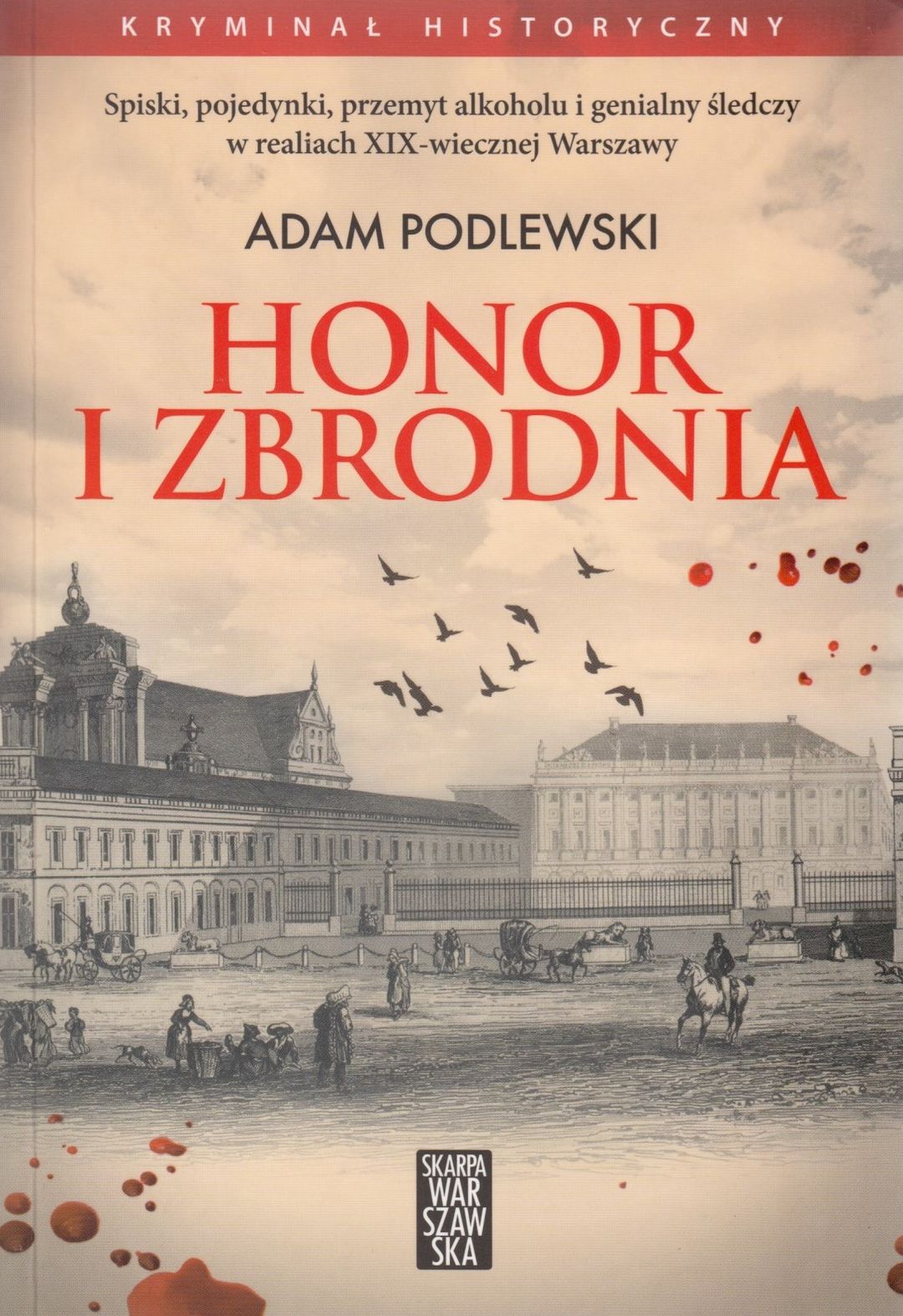 Gdy na rogatkach miasta ginie podejrzany o przemyt alkoholu porucznik czwartaków, Albert Wieluszycki, siły policyjne Warszawy usiłują zatuszować skandal. O pomoc proszą dwóch weteranów Pierwszego Pułku Szwoleżerów - pozostającego na żołdzie księcia Tomasza Żubrowskiego i unikającego carskich władz Jacka Olszowskiego. Uwikłany w długi wdzięczności wobec przyjaciela Olszowski musi podjąć śledztwo, które zaprowadzi go w najmroczniejsze zaułki dawnej Warszawy. Adam Podlewski - historyk, laureat kilku konkursów literackich, m.in. Falkon 2012, Falkon 2013, Brwikon 2014, autor opowiadań publikowanych w kilku antologiach i czasopismach.