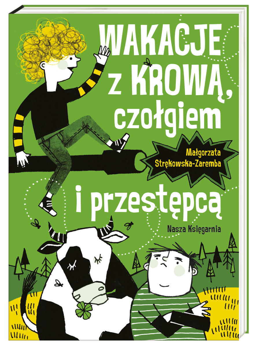 Kontynuacja przygód bohaterów "Berego, gangstera i góry kłopotów". Tym razem najlepsi przyjaciele bardzo się starają, aby nie spędzić wakacji na wsi… Uważają, że zanudzą się tam na śmierć. Niestety, wyjazd dochodzi do skutku. Jednak wszystko wskazuje na to, że nie będzie taki nudny. Za chłopcami podąża przestępca! "Wakacje z krową, czołgiem i przestępcą" opowiadają z humorem o przygodach Kuby i Wojtka, ale podejmują także wiele ważnych tematów takich jak: problemy dzieci z rozbitych rodzin, więź łącząca wnuka i dziadka czy lęk przed odrzuceniem. Książka uhonorowana następującymi nagrodami:Książka roku 2006. Wyróżnienie Literackie Polskiej Sekcji IBBY.Mały Dong 2006. Wyróżnienie Duży Dong 2006.