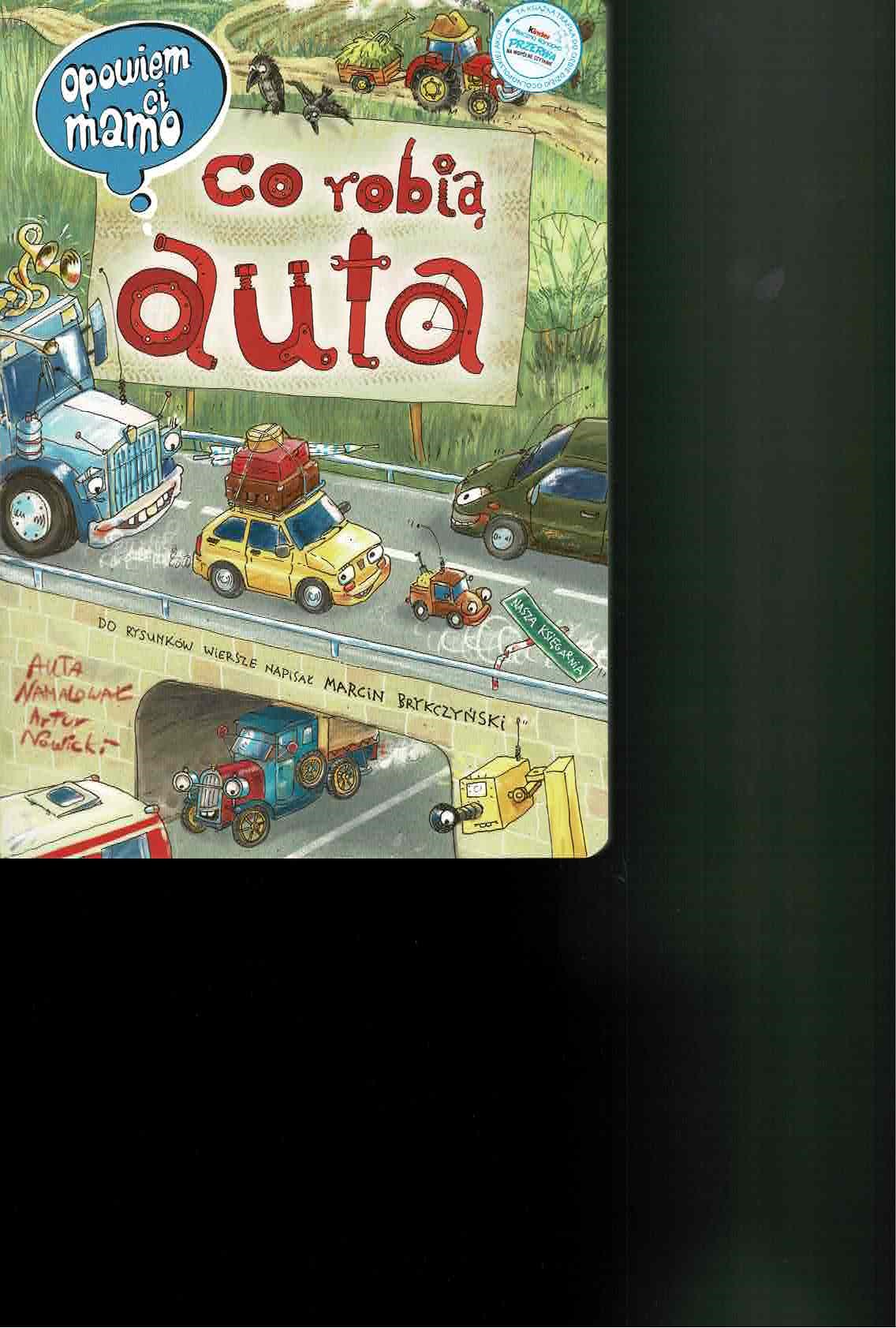 Ile tu aut! Samochody osobowe i ciężarowe, nowoczesne i zabytkowe, przyczepa kempingowa i taka do przewozu konia. Są też dźwigi, koparki, autobus, śmieciarka, pług, kombajn i wiele innych. l ile się tu dzieje! Auta wjeżdżają na autostradę, biorą udział w rajdzie, stoją w korku i na wielopoziomowym parkingu. Inne pojazdy pracują w polu i na budowie, odśnieżają, a nawet pomagają kotu zejść z drzewa. Dzieci w wieku 2-6 lat, dla których przeznaczona jest ta książka, lubią obserwować otoczenie. Zauważają także auta i maszyny. Duże, głośne, skomplikowane, szybkie, silne - dla jednych fascynujące, dla innych trochę straszne. Dzieci patrzą czasem na pojazdy jak na żywe istoty, które uśmiechają się, dziwią, martwią albo złoszczą. l tak właśnie auta zostały narysowane w tej książce. Dzięki temu możemy zachęcić dziecko, by opowiedziało, jakie przygody spotykają samochody, co wyrażają ich miny. Możemy również wspólnie z dzieckiem rozwiązywać zagadki, napisane znakomitym wierszem. Opowiadanie o wydarzeniach, uczuciach i ich przyczynach wspomaga rozwój mowy, uruchamia wyobraźnię, ćwiczy empatię i zdolność twórczego rozwiązywania problemów. Książka z jednej strony więc przekazuje wiedzę o budowie pojazdów i ich zastosowaniach, z drugiej zaś - opowiada o uczuciach i przygodach bohaterów. Mały czytelnik nie tylko zdobywa wiedzę techniczną, lecz także rozwija sferę emocjonalną i smak artystyczny. A na koniec zagadka. Jedno z aut jest głównym bohaterem książki i pojawia się na wszystkich obrazkach. Które?