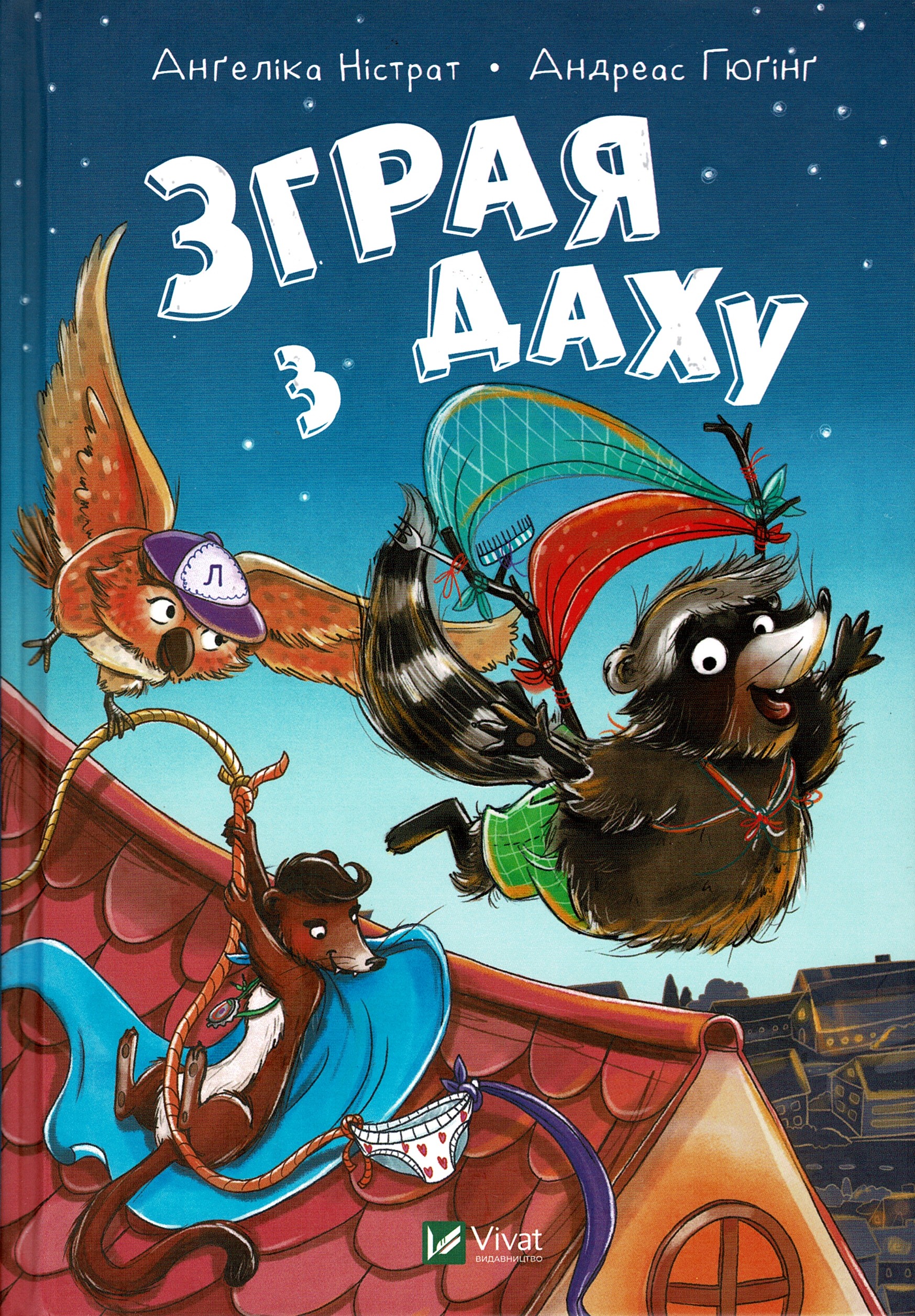 Уночі, коли люди засинають, місто загарбують тварини. Вони вільно гуляють вулицями, деруться на дахи й балкони, ба навіть їздять у метро! Єнот Пухась і сова Лулу — найзухваліші тварини на світі. Якось уночі вони вирушили на полювання за їжею до супермаркету і натрапили на знаного бешкетника куницика Екі. І відтоді троє друзівнерозлийвода щовечора зустрічаються на затишному горищі й планують наступну грандіозну пригоду. Разом із зухвалими підкорювачами дахів ви навчитесь не боятися кабанів, долати перешкоди, а також дізнаєтесь, чому варто завжди зберігати спокій.
