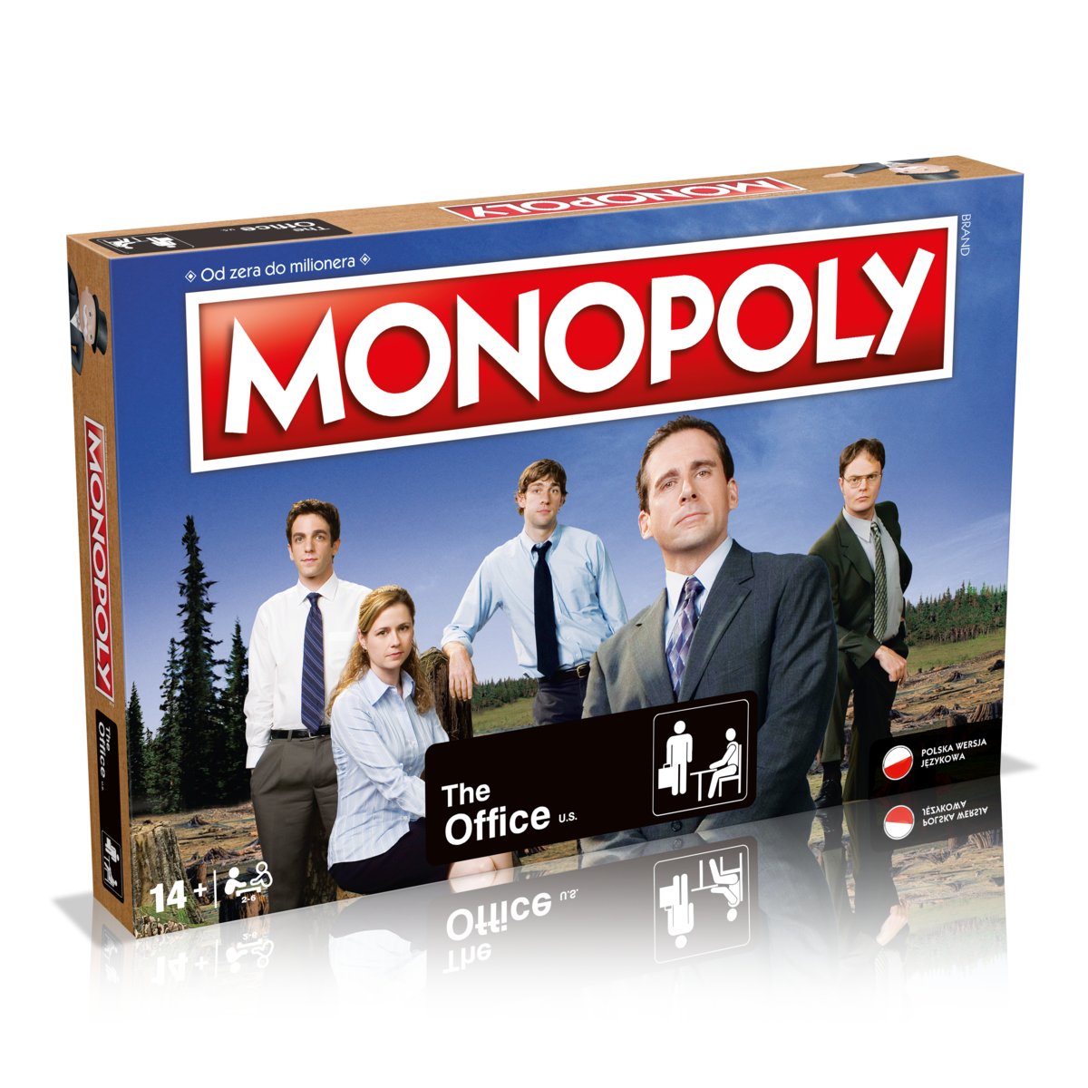 Monopoly : od zera do milionera : the office u.s. - Warszawa : Hasbro Poland, © 2022. - 1 gra (plansza do gry, 6 kolekcjonerskich pionków, 28 kart Tytuł Własności, 16 kart That’s What She Said, 16 kart World’s Best Boss, Plik banknotów MONOPOLY, 32 domy, 12 hoteli, 2 kostki) ; w pudełku 27x40x6 cm + Instrukcja