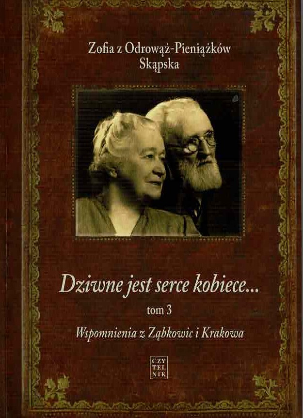 "Dziwne jest serce kobiece… tom 3 Wspomnienia z Ząbkowic i Krakowa" Zofii z Odrowąż- Pieniążków Skąpskiej kończy niezwykłą sagę rodzinną spisywaną przez sześćdziesiąt lat. Autorka, w powojennej sytuacji politycznej kraju, podejmuje z mężem raz jeszcze wyzwanie pracy zawodowej, tym razem w Ząbkowicach Śląskich. Po śmierci męża ostatnie dziesięć lat życia spędza w Krakowie. Bohaterami, jak w całej trylogii, są prawdziwe osoby, a tłem autentyczne wydarzenia.