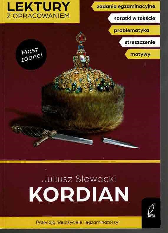 "Kordian" to najbardziej znany dramat romantyczny Juliusza Słowackiego. Tytułowy bohater to młody chłopak, którym targają trudne emocje. Zastanawia się nad sensem życia, przeżywa trudną miłość. Po nieudanej próbie samobójczej, odbywa podróż po Europie, w trakcie której dowiaduje się, że dla ludzi ważne są pieniądze, władza, sława. Na szczycie Mont Blanc podejmuje decyzję, ze jego celem stanie się walka o wolność ojczyzny. Wraca do Polski z zamiarem zabicia cara, nawet kosztem własnego życia. Czy uda mu się osiągnąć swój cel? Czy poświęcenie jednostki dla dobra ogółu ma sens? Seria "Masz to zdane!" to praktyczna pomoc dla uczniów szkół podstawowych i średnich. Obejmuje ona lektury, których znajomość jest wymagana na egzaminie ósmoklasisty i na maturze. Opracowania – przygotowane przez doświadczonych nauczycieli – uwzględniają podstawę programową i wymagania egzaminacyjne. Każdy tekst opatrzono notkami na marginesie, które zwracają uwagę na najważniejsze fragmenty lektury. W opracowaniu znalazły się następujące elementy: notka o autorze ; streszczenia: krótkie (całego utworu) i szczegółowe (kolejnych rozdziałów lub części) ; plan wydarzeń ; charakterystyka bohaterów ; problematyka utworu ; gatunek i rodzaj literacki ; znane cytaty ; motywy literackie ; geneza utworu i/lub wyjaśnienie tytułu ; przykładowe tematy wypracowań ; przykładowe zadania egzaminacyjne. [Powyższy opis pochodzi od wydawcy].