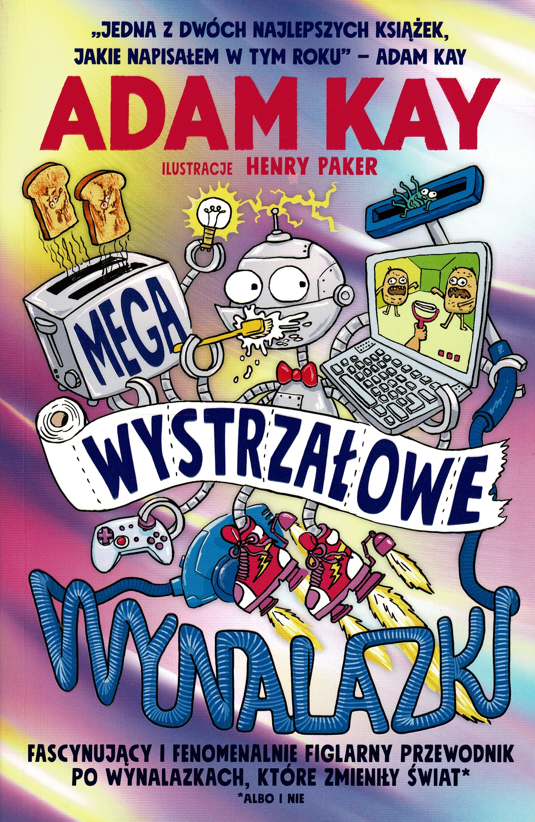 Jedna z dwóch najlepszych książek, jakie napisałem w tym roku! – Adam Kay Czy zastanawiasz się czasem, skąd wzięło się to wszystko, co widzisz wokół siebie? Nie, nie ze sklepu. Chodzi mi bardziej o to, kto wpadł na ten genialny pomysł, żeby stworzyć gry wideo albo komu zaświtała w głowie ta wkurzająca myśl, żeby zbudować szkołę? Z najnowszej, przezabawnej książki autorstwa bijącego wszelkie rekordy sprzedaży oraz niezwykle przystojnego pisarza Adama Kaya, zilustrowanej przez wybitnego rysownika Henry’ego Parkera, dowiesz się o wszystkich wynalazkach ludzkości: od głupkowatych, przez te ohydne, aż do tych niebezpiecznych. Jak zwykle Adam w swoim niepodrabialnym stylu zachwyca mnóstwem ciekawostek, na przykład… …o królowej, która załatwiła się do pierwszej na świecie toalety, …o rzepach, które zostały wynalezione… przez psa, …o Grekach, którzy podcierali się talerzami (dlaczego to robili?!). A to zaledwie trzy z 48 762 851 208 inspirujących faktów (tak na oko), które znajdziesz w tej książce!