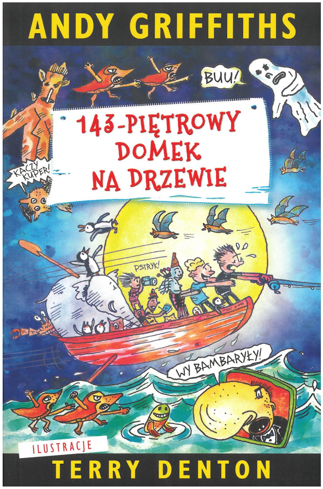 Jedenasty tom najśmieszniejszej serii od czasów „Dziennika cwaniaczka”! Andy i Terry mieszkają w stuczterdziestotrzypiętrowym domku na drzewie (mieli stutrzydziestopiętrowy, ale się rozbudowali). A ten domek jest najfajniejszy na świecie! Znajdziecie tu między innymi: nawiedzony cmentarz, słowoplujkę, narzekalnię, ducha ducha ducha o imieniu Fredek, roboty udające się w podróż pośrubną oraz bar mleczno-rybny – pingwiny go uwielbiają! No, na co czekacie? Właźcie!